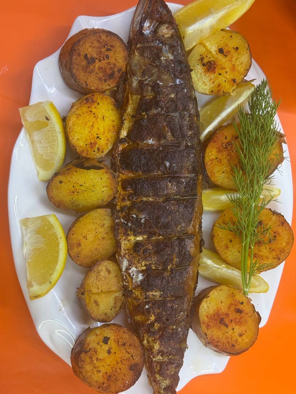 Скумбрия на углях с картошкой